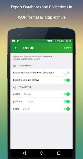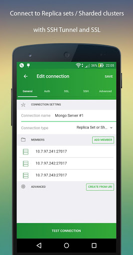 MongoLime is an application created to work with MongoDB databases on mobile devices and tablets running Android. The application’s interfaces are designed for easy data collection management. The application allows you to connect to MongoDB databases directly or in the Replica Set mode.