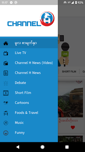In Channel H , you can watch a various number of categories including ~ Latest News ~ Latest Feature Videos ( News ) ~ Debates ~ Short Films ~ Cartoons ~ Food And Travel ~ Music ~ Funny