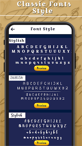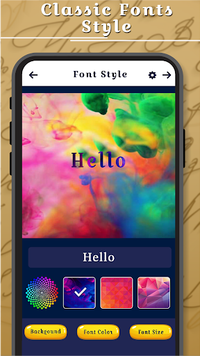 app with not only Classic font style bt app also allows the option to personalize your choice Background with amazing font styles. It is easy and simple to use by any users, Just select your choice BG from the collection and apply text styles with your own words and save it. App also allows users to amazing font styles to change it and also change the size of the text. App with share your wish text into amazing font styles.