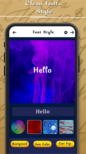app with not only Clean font style bt app also allows the option to personalize your choice Background with amazing font styles. It is easy and simple to use by any users, Just select your choice BG from the collection and apply text styles with your own words and save it. App also allows users to amazing font styles to change it and also change the size of the text. App with share your wish text into amazing font styles.