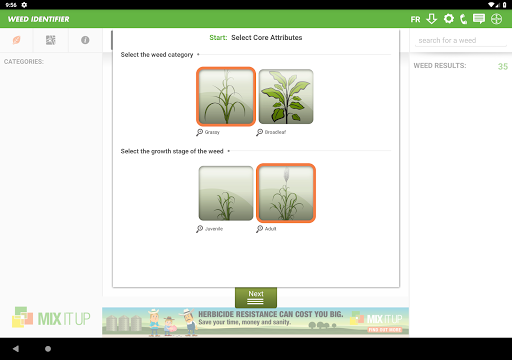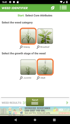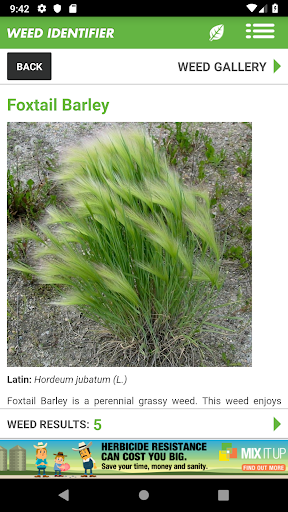 IDENTIFY: The Weed ID app lets you ID weeds based on key characteristic selections you have identified. It also allows you to search for weeds, view the weed database, and provide detailed descriptions and photos of the weeds.