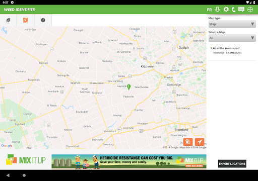 MAP IT: The Map It section of the app uses a WiFi connection and your GPS coordinates to map and track the weed pressures you have identified year-over year.