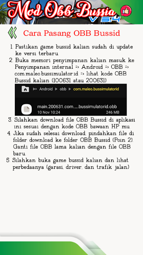 Sebelum bussid mania download obb bussid silahkan cek terlebih dahulu versi kodename obb bussid di memori penyimpanan kalian. Karena ketika sobat bussid memasang file obb sound serigala bussid v3.4 dengan versi yang berbeda maka game bussid kalian tidak akan bisa dimainkan. Jadi perlu diperhatikan betul versi obb bussid knalpot serigala sebelum kalian mengunduhnya. Untuk cara pemasangan mod serigala bussid yang lebih detail bisa kalian lihat di dalam aplikasi inipaa menu cara pasang mod bussid obb sound serigala.