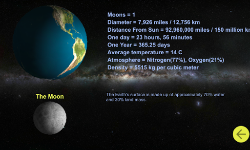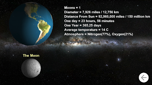 This app provides a wealth of information about the planets in our solar system, the planets are displayed in 3D.
