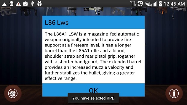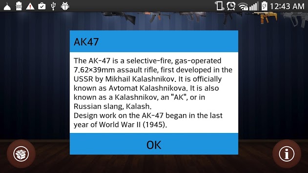 The real gun sounds simulator is the most realistic simulation shots of weapons. This weapons simulator is a large collection shots sounds from different types of weapons. This application contains almost all famous different types of weapons, such as machine guns, machine guns,