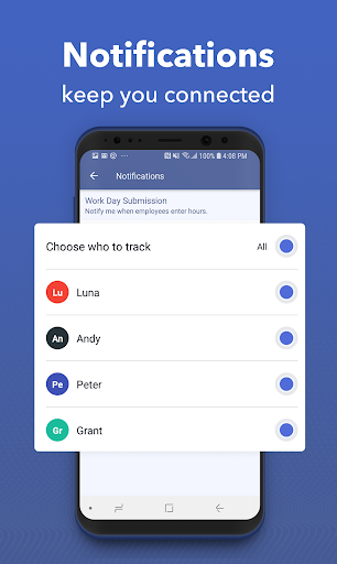 The Employee Link hours tracker is so simple to learn, your whole crew will be able to start tracking time right away. With one click they can view tasks on their schedule and tap the task to mark it complete. Increase productivity and decrease overtime by tracking attendance and break- time length. Entering an employee's wage works well for showing gross pay earned. An employee might ask, "what is mypay for this calendar month?", the pay period time calculator will instantly show them their total hours clocked and total pay.