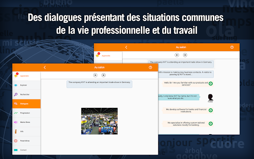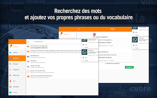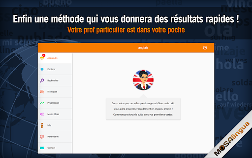 MosaLingua est une méthode qui vous permet de mémoriser le vocabulaire et les expressions-clés qui sont en lien direct avec votre spécialité professionnelle. Grâce aux dialogues intégrés, vous améliorerez très rapidement votre compréhension ainsi que votre prononciation tout en progressant en anglais.