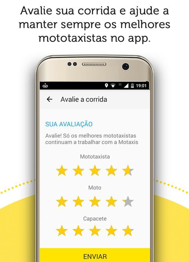 A Motaxis lhe conecta com os melhores mototaxistas da cidade. Com a Motaxis você tem na palma da mão todas informações do mototaxista que irá lhe buscar e ainda pode avalia-lo ao final da corrida.