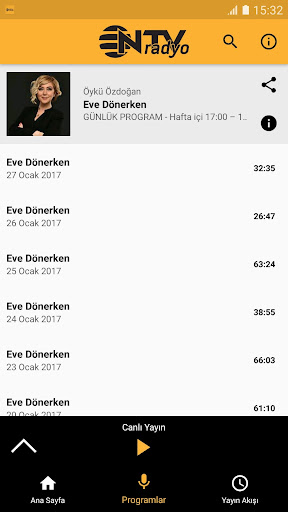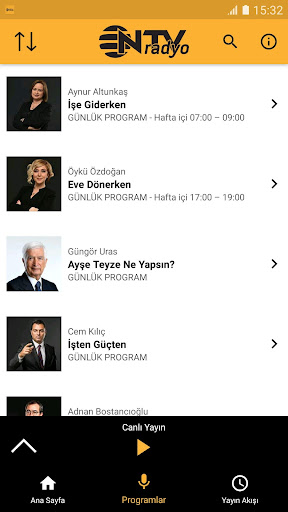Thanks to the completely new NTV Radyo application with its design and infrastructure, you will be able to listen to NTV Radio live broadcasts, listen to podcasts of your favorite shows and follow the broadcast stream.