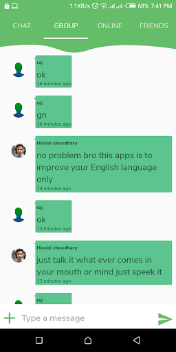 Our application focuses exclusively on learning English, and other languages are not permitted in group chats. Please keep our application rules in mind when using our platform. Let's learn and progress in English together! Join our English chat application now!