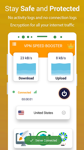 Speed VPN wors with 5G, 4G, 3G, WiFi, Hotspot and all mobile data carriers.