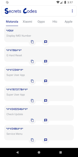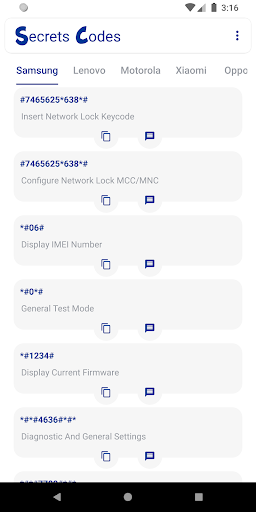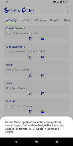 Secret Code application include the android secret code of all mobile device like Samsung, Lenovo, Motorola, HTC, Apple, Xiaomi and OPPO.