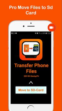 So, if you want to make more storage for your applications or anything, Use this Transfer Phone Files-Apps To SD Card will help you to Move, Copy and Remove your phone files To Your Removable SD Card with the help of this application. So this app is considered like a mover an SD Card. We have also added a new feature Auto Transfer your medias to SD Card automatically. With a really easy to use interface you will be able to choose between copying, moving and removing your files.
