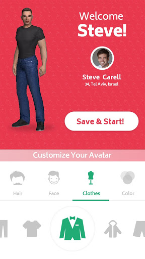 Once logged-in, users create an avatar of their choice and add 3 of their Facebook pictures. This allows for a quicker process of decision-making, in contrast to other possibly deceiving dating apps.