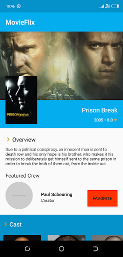 MovieFlix app shows the latest Movies and TV Shows and their Trailers. You can search and mark your favourite apps to watch later.