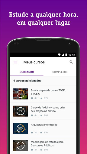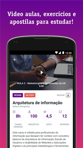 Nossos cursos completos são ministrados por pessoas especializadas em suas áreas de atuação, e você pode aprender no seu tempo, quando e onde quiser. Nossa plataforma de cursos foi criada para que todo o conteúdo também possa ser acessado offline!