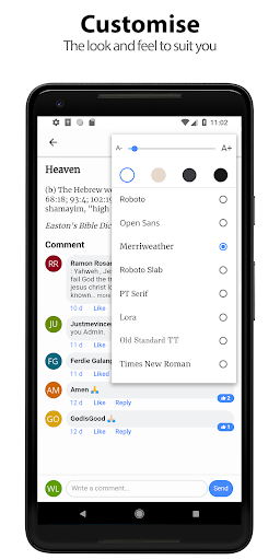 • 6 full reference books at hand: Easton's Bible Dictionary, Smith's Bible Dictionary, Hitchcock's Bible Names Dictionary, The King James Version (KJV) Bible Dictionary, Nave's Topical Bible and the Condensed Biblical Cyclopedia.