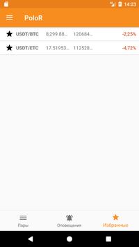 Real time ticker Manage favourities Set alerts and get notified about price changes PoloR is not affilated with Poloniex cryptocurrency exchange.