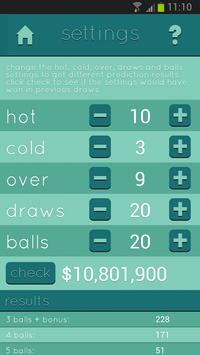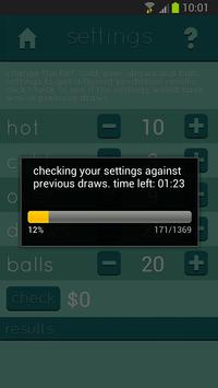 check your settings using lottoguru's checking function, which goes through all the draws since lotto began, and uses your settings to predict the next draws numbers. The total amount you would have won is shown - if all combinations of the balls in the pool were taken each week - including the number of division wins from division 1 to division 5