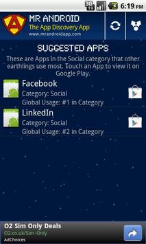 When we find an app we really love, we often identify with it too. Many people see the apps they use frequently as a reflection of themselves. Mr Android understands this and helps you discover new apps. Each recommendation he makes is tailored to you, based on the apps you use most.