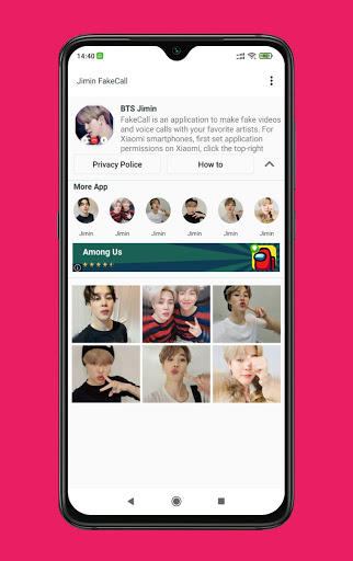 With this application you can prank your friends as if you were on the phone of your favorite artist, BTS Jimin. You can also show off with your friends by taking screenshots during a video call and then sharing them on your social media such as Facebook, Instagram, WhatsApp, Twitter and others.