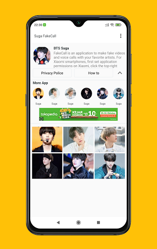 With this application you can prank your friends as if you were on the phone of your favorite artist, BTS Suga. You can also show off with your friends by taking screenshots during a video call and then sharing them on your social media such as Facebook, Instagram, WhatsApp, Twitter and others.
