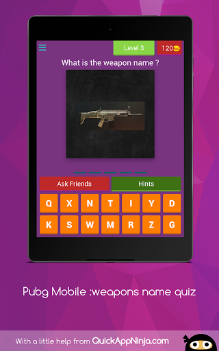 Pubg Pro !? So this 5 minutes quiz is for you. A quick test about weapons names. In includes common and rare known weapons. It helps you to know the weapons names quickly in the battlefield.