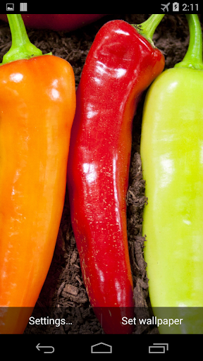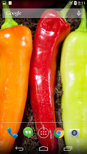 This is wonderful interactive live wallpaper with colorful chili peppers and water drops (ripples) effect.