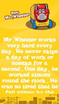 Mr.Wheeler works very hard every day. He never skips a day of work or sneaks for a second. One day, he worked almost round the clock. He was so tired that he fell asleep by the roadside. Suddenly, he found himself getting stuck in a ditch and couldn’t move. Luckily, Andy, Kelly andJoey passed by. Could they rescue Mr.Wheeler ?