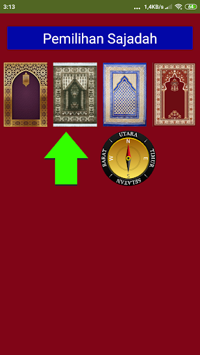 * Fitur kompas di sebelah pencari kiblat.