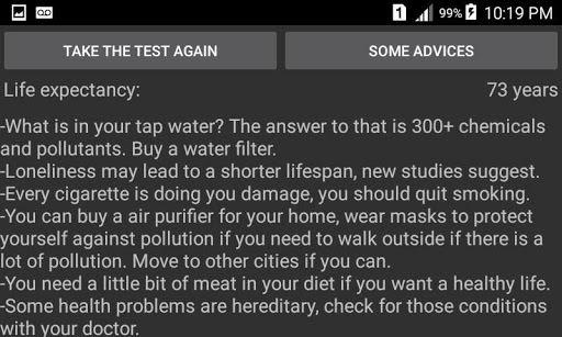 The app also gives you some advices to improve your life expectancy.