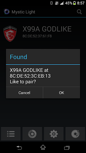 Mystic Light is easy to set up; While finding new Bluetooth-enabled LED devices in the area, Mystic Light will show the device ID to easily identify the MSI X99A GODLIKE GAMING motherboard or any other devices in range. Keep track of paired Bluetooth-enabled LED devices; Mystic Light allows you to change each connected device's name and icon to your preference using your smartphone or tablet.