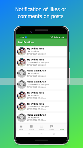 * Get notifications when friends post, friends like and comment on your posts.