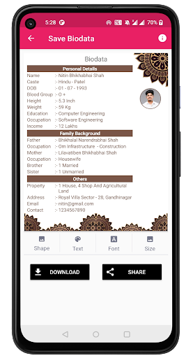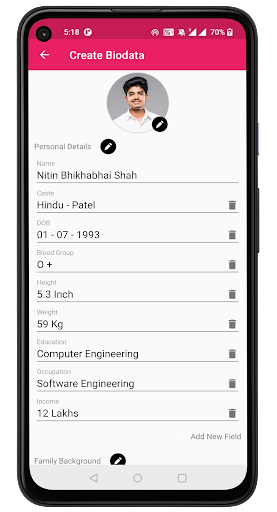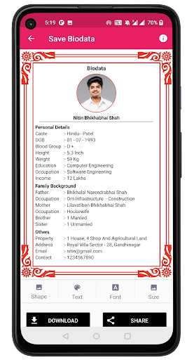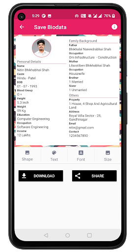 This app can be the perfect app to find your partner by creating awesome bio data. You can recommend and suggest this app to your friends and relatives so they can also create best bio data for them.