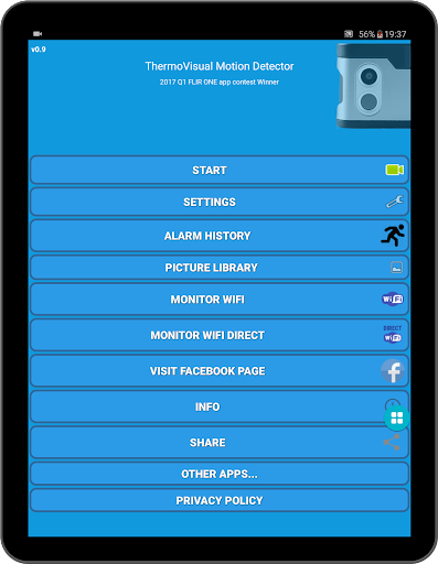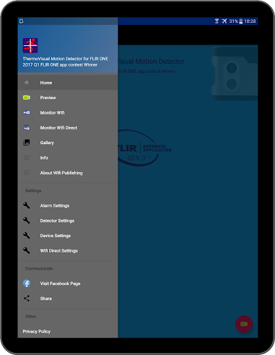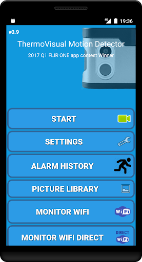 ThermoVisual Motion Detector is an intelligent, easy to use application that detects thermal and/or visual motion or changes automatically by using FLIR ONE infrared camera. It operates in day & night. When you run ThermoVisual Motion Detector, you can observe any motion and/or changes in your FLIR ONE field of view on your screen. In addition, you can set alarms. Alarms could generate sound, makes phone call where available.