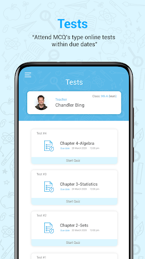 In this portal MTB Schools & Colleges allow you to Post Notice that will be displayed to "Display to Student of their respected class", Upload lecture for online classes. Provide complete lecture or daily lecture to your online class and teach them from home. Teacher can also take the Student’s Test / Quiz / Exam and Paper online. Teacher can also design online Test / Quiz / Exam and Paper.