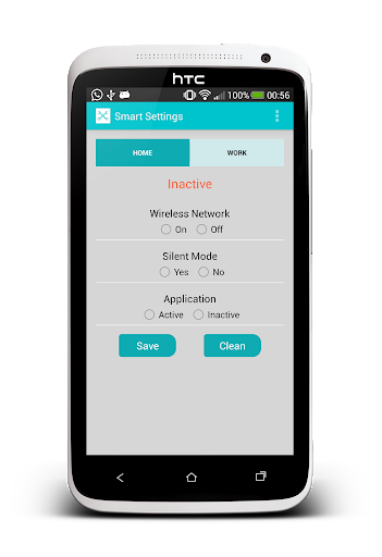 After installation, run Smart Settings and choose wireless network and silent mode status, then select activate application and click save button. Your settings saved for this location. If you are at around this location again, Smart Settings are changing settings for you.