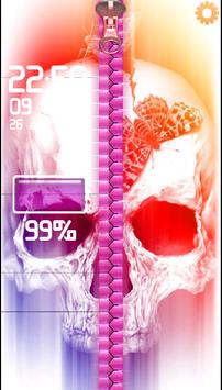 Skull Zipper Lock Screen is an app to lock your mobile using a zip with a skull image.