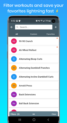 - Filter exercises based on their primary, secondary, and detailed target muscles