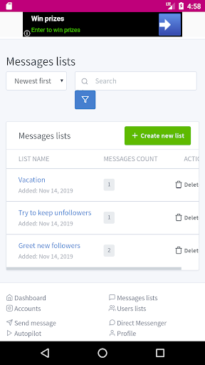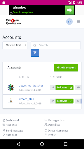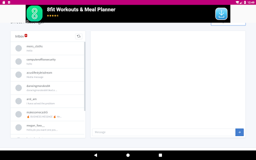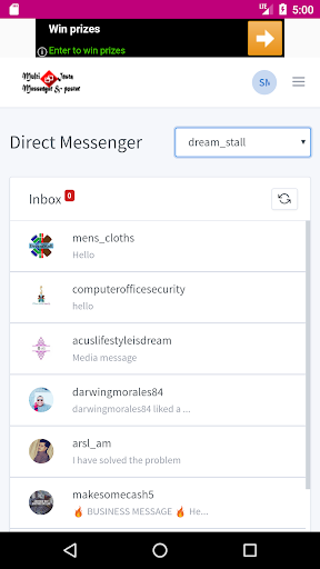 All accounts are listed in the list section just select the account from the account section to check messages. Multiple Accounts Messenger & Poster For Instagram is the tool to help people improve their experiences with Instagram. Instagram Messenger, Instagram Poster, That's the area we have Improved through this application. Feel free to knock us in our customer care if you face any problem Let us know.