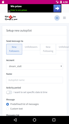 You can select your targeted customer and fit a message you wish to send automatically whenever any action is done on the account or post. Such as, you want to send a particular message whenever you get a new follower.