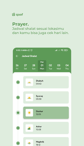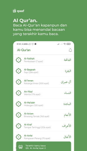 Qaaf Muslim เป็นแอปพลิเคชั่นมุสลิมที่มีคุณสมบัติหลากหลายที่มีการออกแบบที่ใช้งานง่ายแอปพลิเคชั่นนี้มีวัตถุประสงค์เพื่อให้เราเรียนรู้เพิ่มเติมเกี่ยวกับศาสนาอิสลามได้ง่ายขึ้นด้วยคุณสมบัติที่มีประโยชน์เพื่อช่วยให้เราเรียนรู้ทุกวันที่สามารถเข้าถึงได้ทุกที่ทุกเวลาหวังว่าแอปพลิเคชั่นนี้จะเป็นประโยชน์ต่อโลกและต่อไปนี้เนื่องจากศาสดา Sallallaahu'alaihi Wasallam สนับสนุนให้ชาวมุสลิมมุ่งมั่นที่จะให้ความสำคัญกับผู้อื่นและสิ่งมีชีวิตอื่น ๆ ตามคำพูดของท่านศาสดา Sallallaahu'alaihi Wasalam กล่าวคือ "Khirirunnas Anfauhum Linnas" ซึ่งหมายถึง "ดีเท่ามนุษย์เป็นประโยชน์มากที่สุดสำหรับผู้อื่น" .