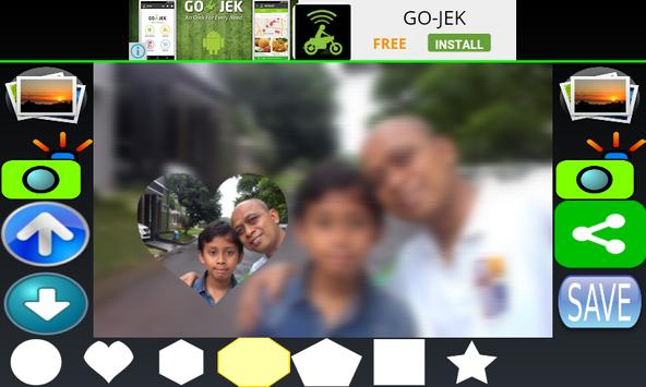 There are focus shapes in this app, i.e. rectangular, love heart, circle, triangle, polygon, pentagon, hexagon, diamond, octagon and star.
