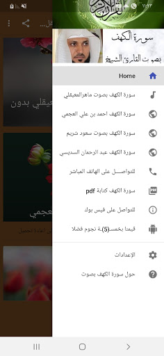 Surat Al-Kahf with the voice of Maher Al-Moaikli without the net includes many buttons and icons with unique features, for example the application of Surat Al-Kahf with a skillful voice, as the icon of Al-Muqaili was added without the net with its folds The Holy Quran mp3 Surat Al-Kahf as the icon of Surat Al-Kahf Ahmed bin Ali Al-Ajami was added and from it also And to diversify the readings, Surat Al-Kahf was added in the voice of Saud Al-Shuraim, and Surat Al-Kahf pdf was added in full in a large font to be able to read at any time from the electronic Qur’an as it is simply distinguished by the ease of use and with the interface of the Qur’an easy to use and with wonderful backgrounds and among the things provided by a button It directly transmits you to Surah Al-Kahf in writing, as if you are contacted while listening to the Holy Quran, he stops and continues After finishing the phone from the place of stopping, other features were added to the application of Surah Al-Kahf Maher Al-Moaikli mp3 to be with comfortable backgrounds for the eye and explain the chest represented by roses and in a wonderful format. This has the French, German and American language of Surat Al-Kahf holy quran, and we do not forget its merit: -