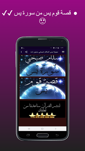 ✔ Provides you with full activation of the application of the Surah Yassin Islam Sobhi application without the net without taking space in the memory because it does not need a large storage space 😍