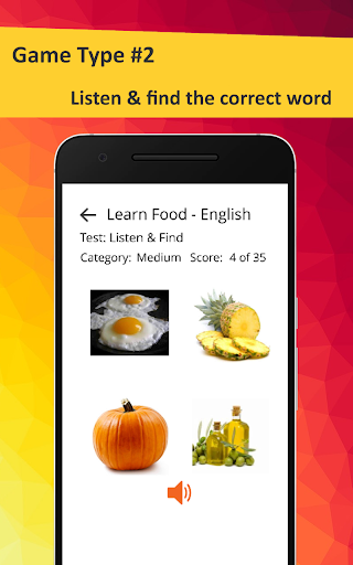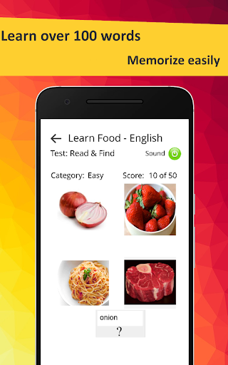 This app provides more than 100 most common food words in English language. Using this app, you will have much better knowledge on English vocabulary.
