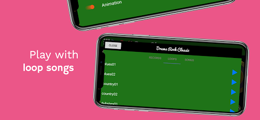 Play drums along with your songs! you can load your songs from the left corner of drum screen.