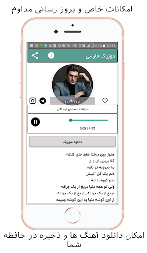 .Possibility to search for a song with its name and singer's name and part of its lyrics