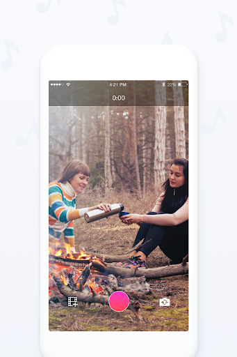 • Puedes elegir grabar con la cámara frontal o trasera y al instante tendrás acceso a una selección de música creada por nosotros para que tu vídeo luzca.