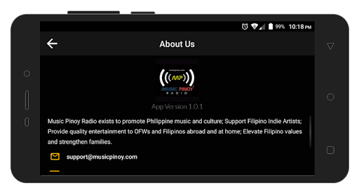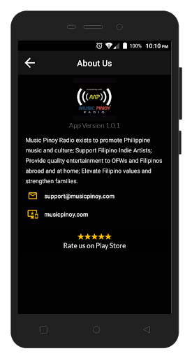 Music Pinoy Radio exists to promote Philippine music and culture; Support Filipino Indie Artists; Provide quality entertainment to OFWs and Filipinos abroad and at home; Elevate Filipino values and strengthen families.